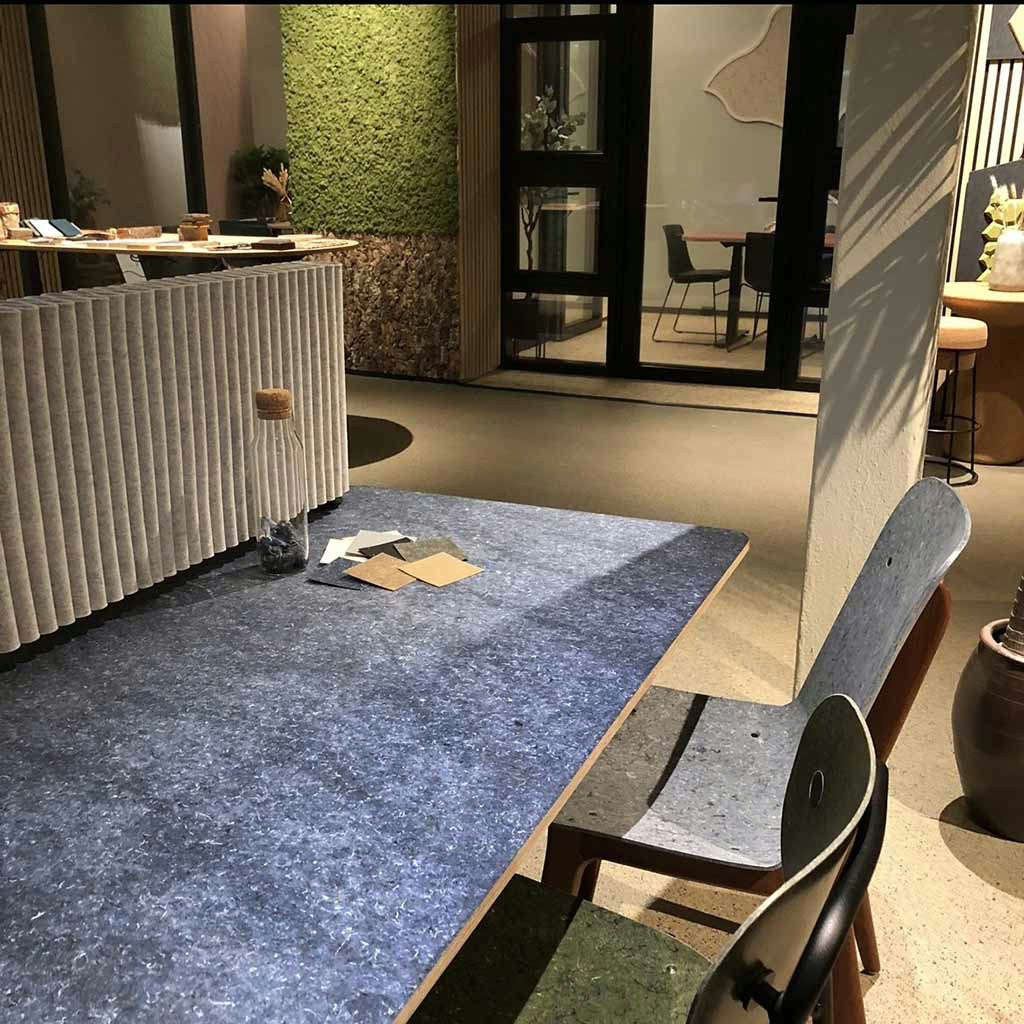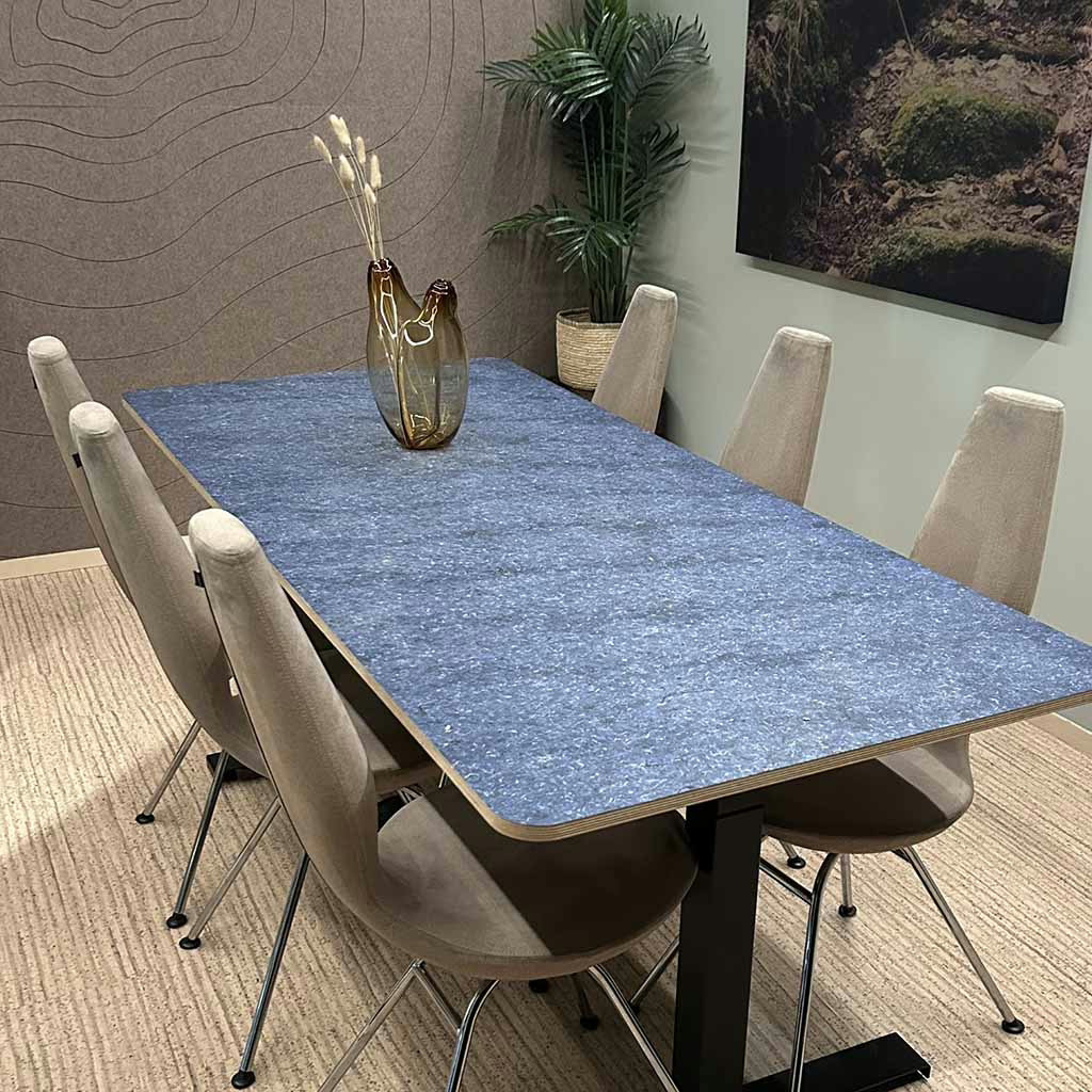 Du kan også velge skreddersydd bordplate fra resirkulerte tekstilavfall fra jeans. Det er upsycling på sitt beste som minimerer forsøpling og i tillegg gir et stilig blikkfang!